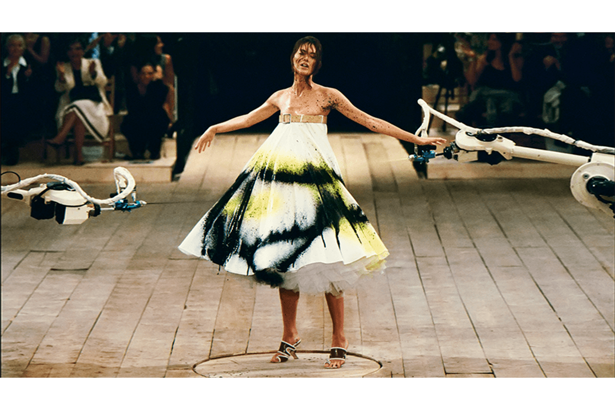 The Spring/Summer 1999 show, entitled No. 13, features a performance by model Shalom Harlow wearing a dress spray-painted by two robotic arms.