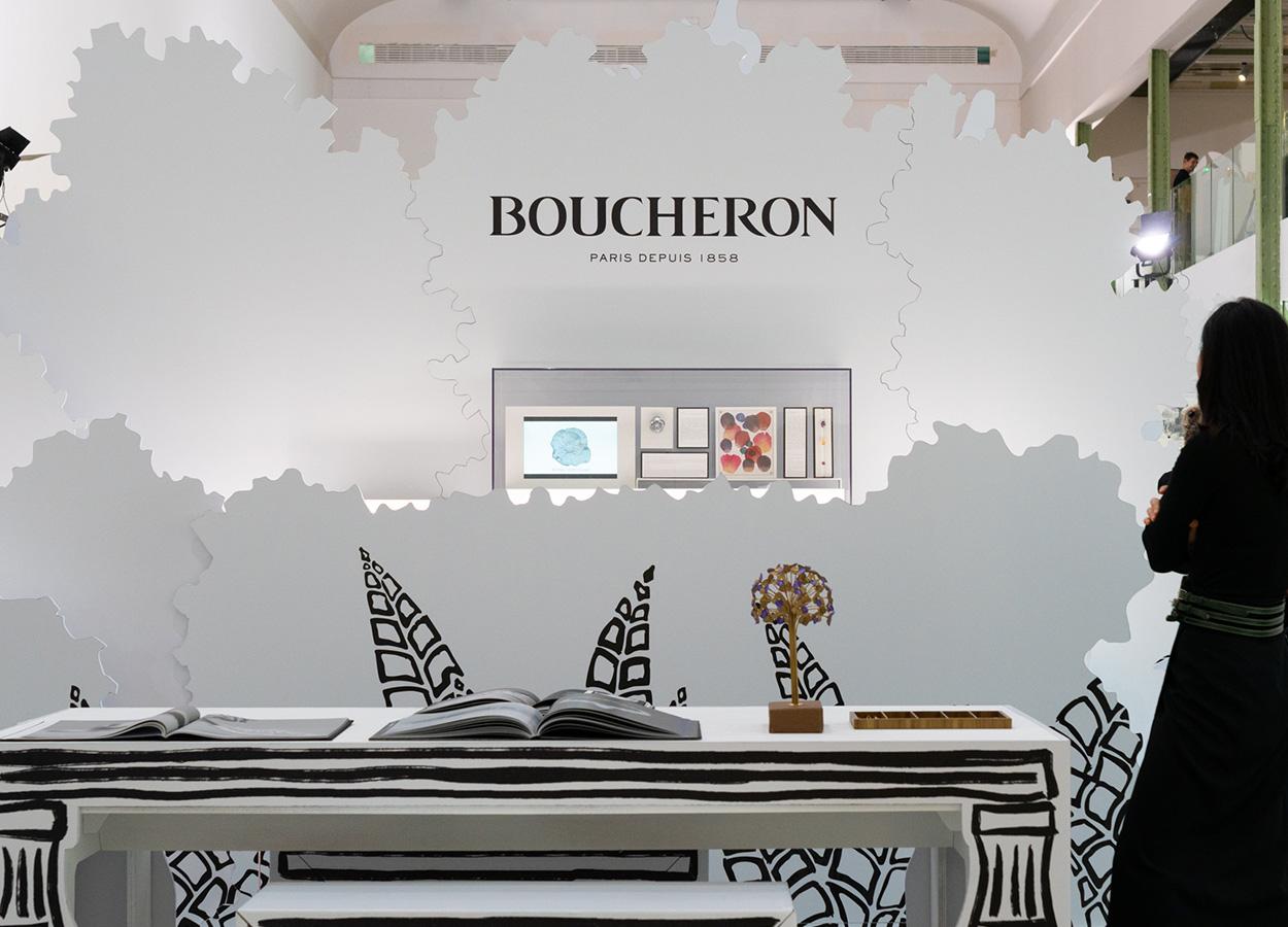 Parmi les maisons du Groupe, Boucheron a offert une immersion exceptionnelle au cœur de son savoir-faire joaillier. Un atelier dédié à la création de pièces de haute joaillerie a permis de découvrir la minutie et l’inventivité de ses artisans, illustrées par deux pièces emblématiques : la Fleur Éternelle, hommage à la nature et à sa préservation, et le collier Point d’Interrogation, chef-d’œuvre de joaillerie sans fermoir et signature iconique de la Maison.