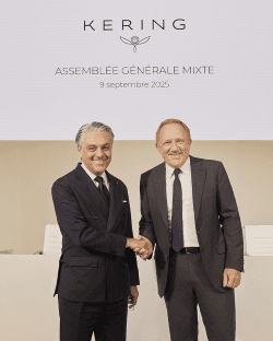 Le 15 septembre 2025, François-Henri Pinault, Président-Directeur général de Kering depuis 2005, transmet les rênes du Groupe à Luca de Meo. Ce dernier devient Directeur général tandis que François-Henri Pinault demeure Président du Groupe.