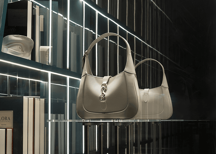 L’allestimento offre però molto più di un impatto visivo; ogni ripiano è un capitolo e ogni oggetto racconta una storia. Il fulcro del concept è l’esplorazione dell’equilibrio sottile tra il rispetto della tradizione e l’apertura alla reinvenzione e dell’identità di Gucci come forza culturale e creativa nel mondo del lusso.
