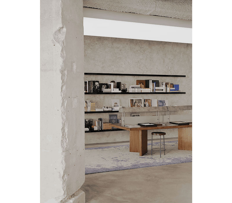 All’interno del negozio, legno, cemento e metallo sono sapientemente lavorati per creare un look moderno e raffinato. Il nuovo spazio di Saint Laurent Rive Droite Paris è stato concepito in collaborazione con Donald Judd Furniture, l’azienda di arredamento fondata negli anni ’80 dall’artista minimalista americano Donald Judd. Frutto di un progetto condiviso tra Donald Judd e Anthony Vaccarello, la location ospita iconici pezzi di arredamento di Judd distribuiti in tutto lo spazio. Tra i pezzi in vendita, due finiture esclusive in acciaio e alluminio verniciato bianco puro sono disponibili unicamente presso il negozio, insieme a una collezione di 15 modelli, tra cui sedie, tavoli, scrivanie e letti. Questa dimensione architettonica non solo contribuisce all’estetica unica del negozio, ma testimonia anche l’impegno di Saint Laurent nel mondo del design.